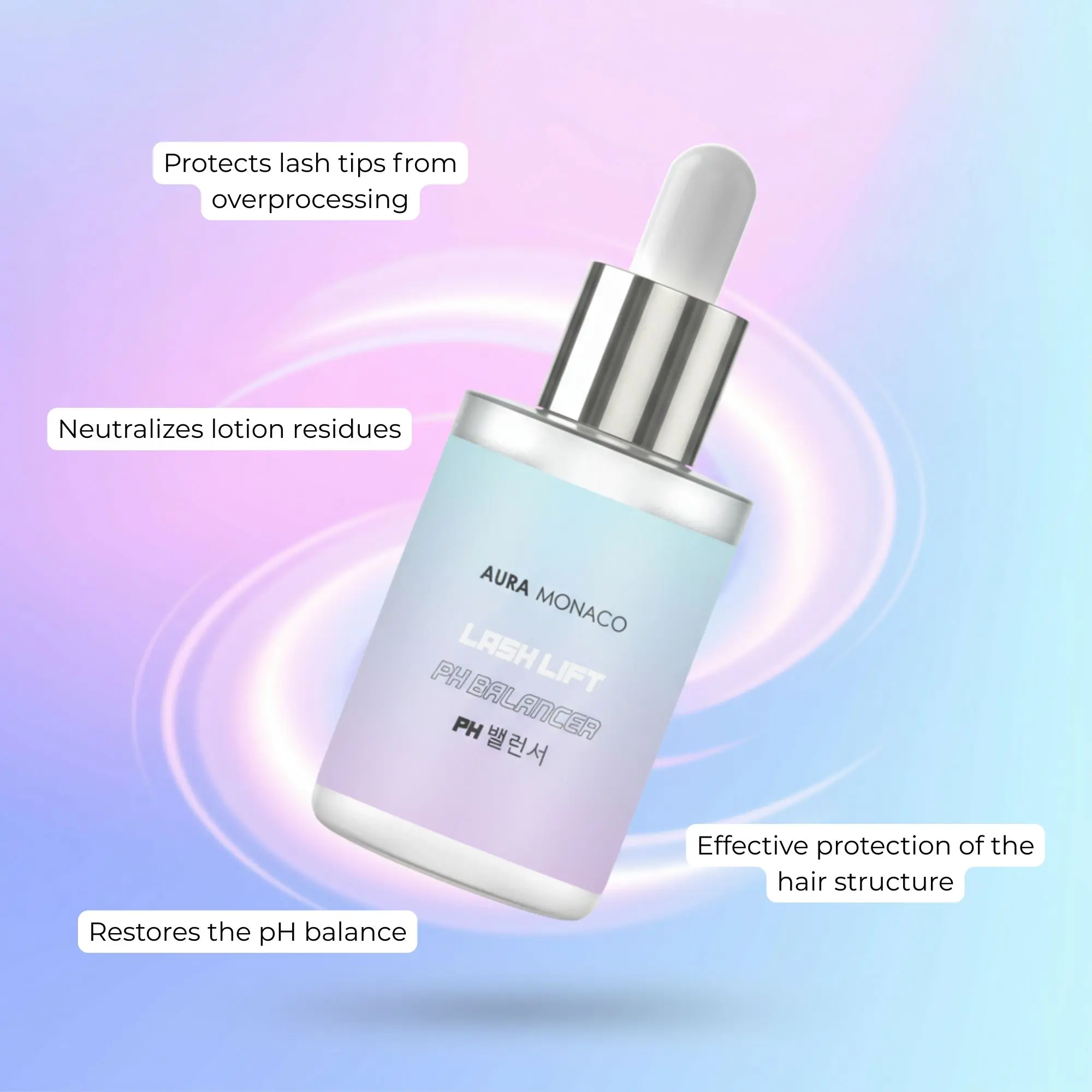 Immediately stops chemical residual reactions after lifting or tinting and restores the natural pH level (5.5). Enriched with hyaluronic acid and fruit extracts, it protects against over-processing and ensures stable, glossy results.